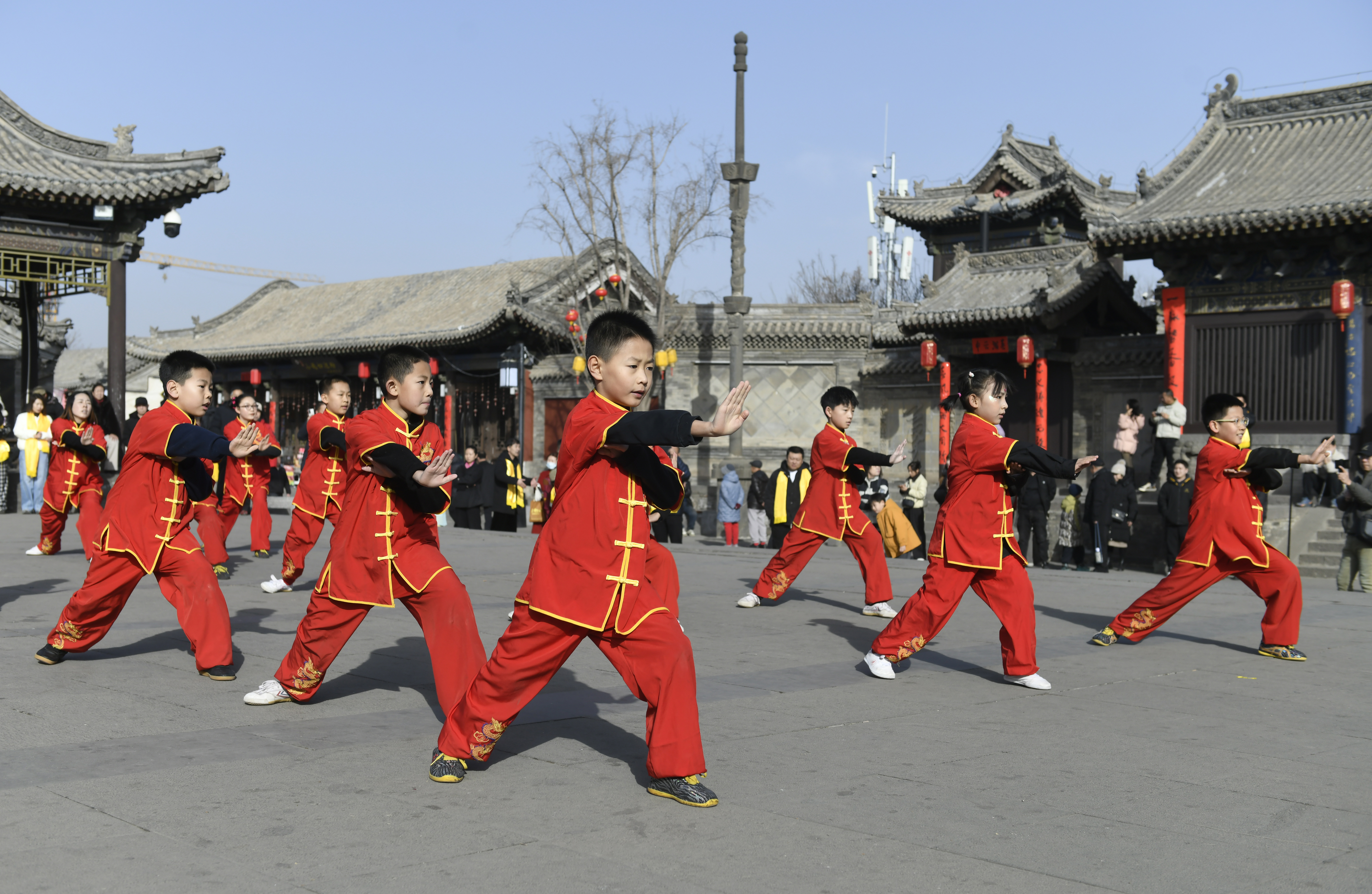 2月25日,大同市塞外梅花拳协会组织会员在关帝庙广场开展武术展演活动,为过往市民、游客展示梅花拳套路、器械、对练等传统武术,全面呈现非物质文化遗产的独特魅力。 (程祥)