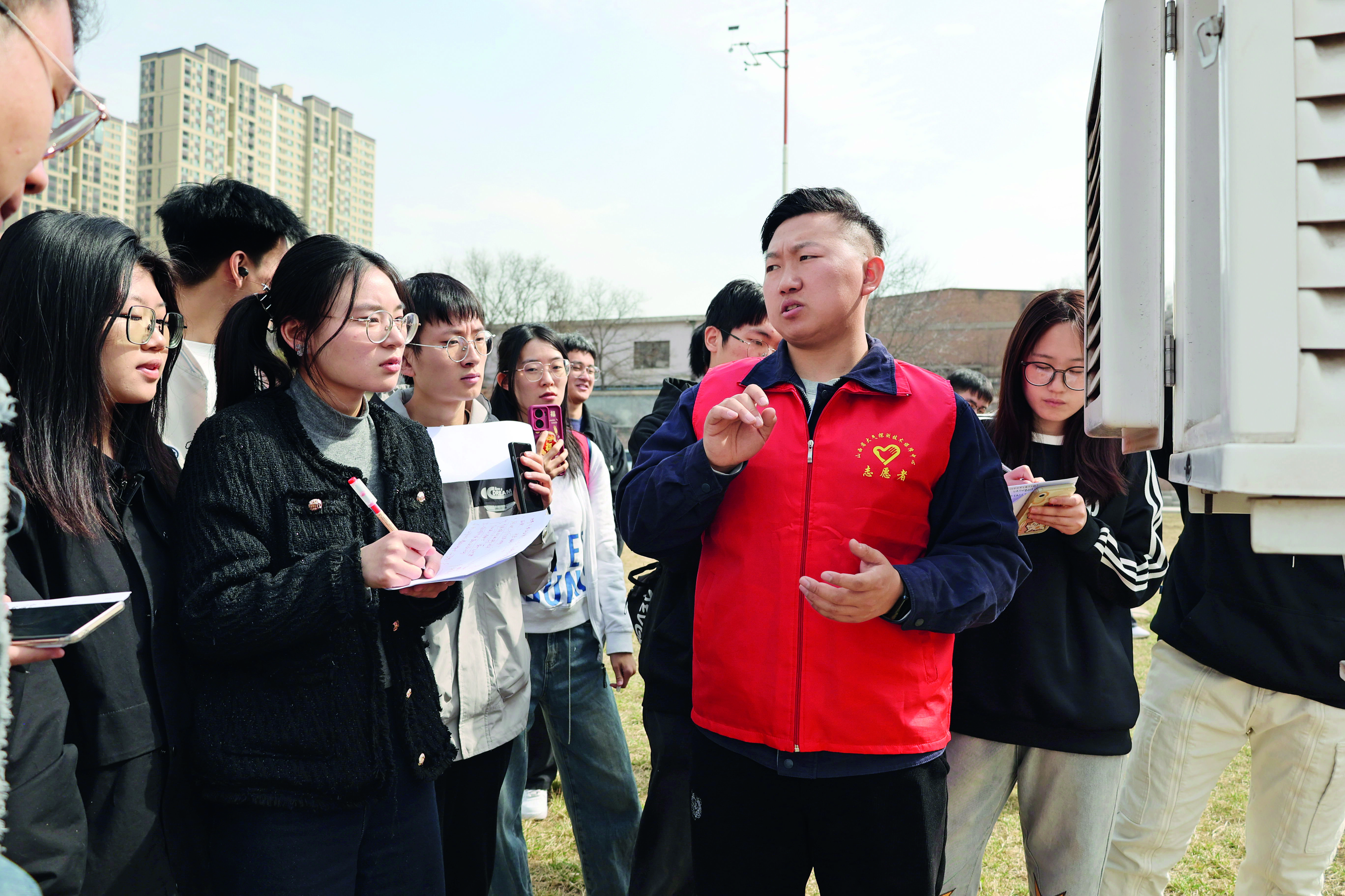 省大气探测技术保障中心工作人员正在讲解气象观测装备