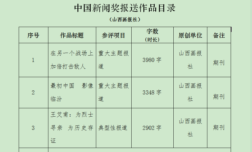 根据《中国新闻奖评选办法》《第36届中国新闻奖参评作品报送通知》要求,我社拟推荐以下3件作品参评第36届中国新闻奖评选。